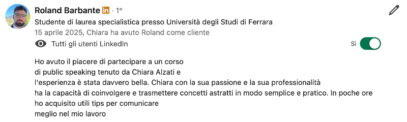 Il Public Speaking è la mia passione. Da sempre.