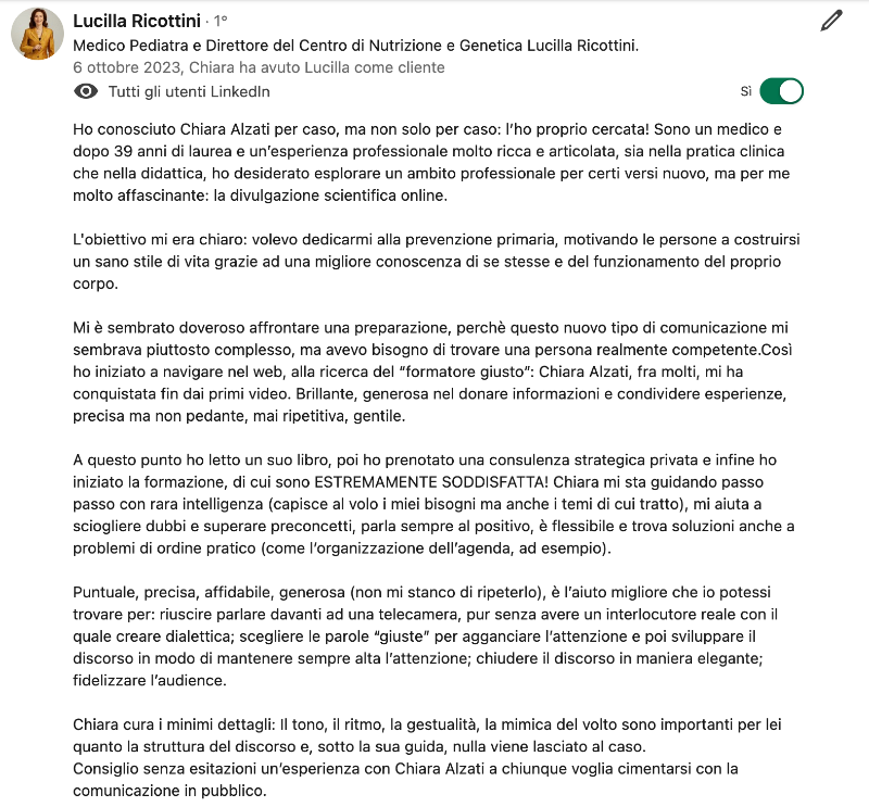 Sai bene quanto, nel tuo ruolo, la capacità di comunicare in modo chiaro e coinvolgente sia fondamentale per trasmettere concetti complessi e catturare l’attenzione del pubblico, vero?